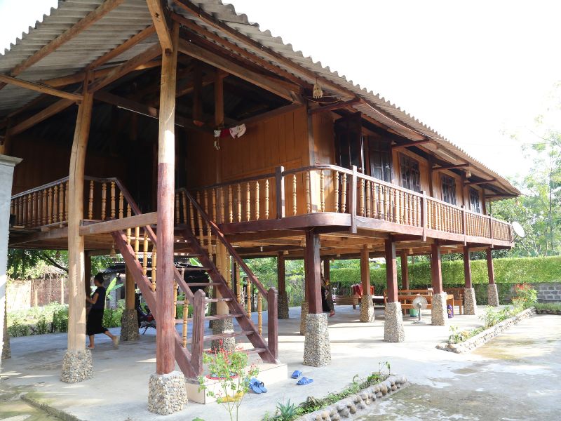 La route serpente entre collines et plantations de thé. Arrêt à Thanh Son avant de rejoindre Muong Lo, cœur verdoyant de la vallée de Muong Lo. Installation chez une famille Thaï, puis balade à vélo à travers rizières et hameaux. Dîner convivial et nuit dans une maison sur pilotis.